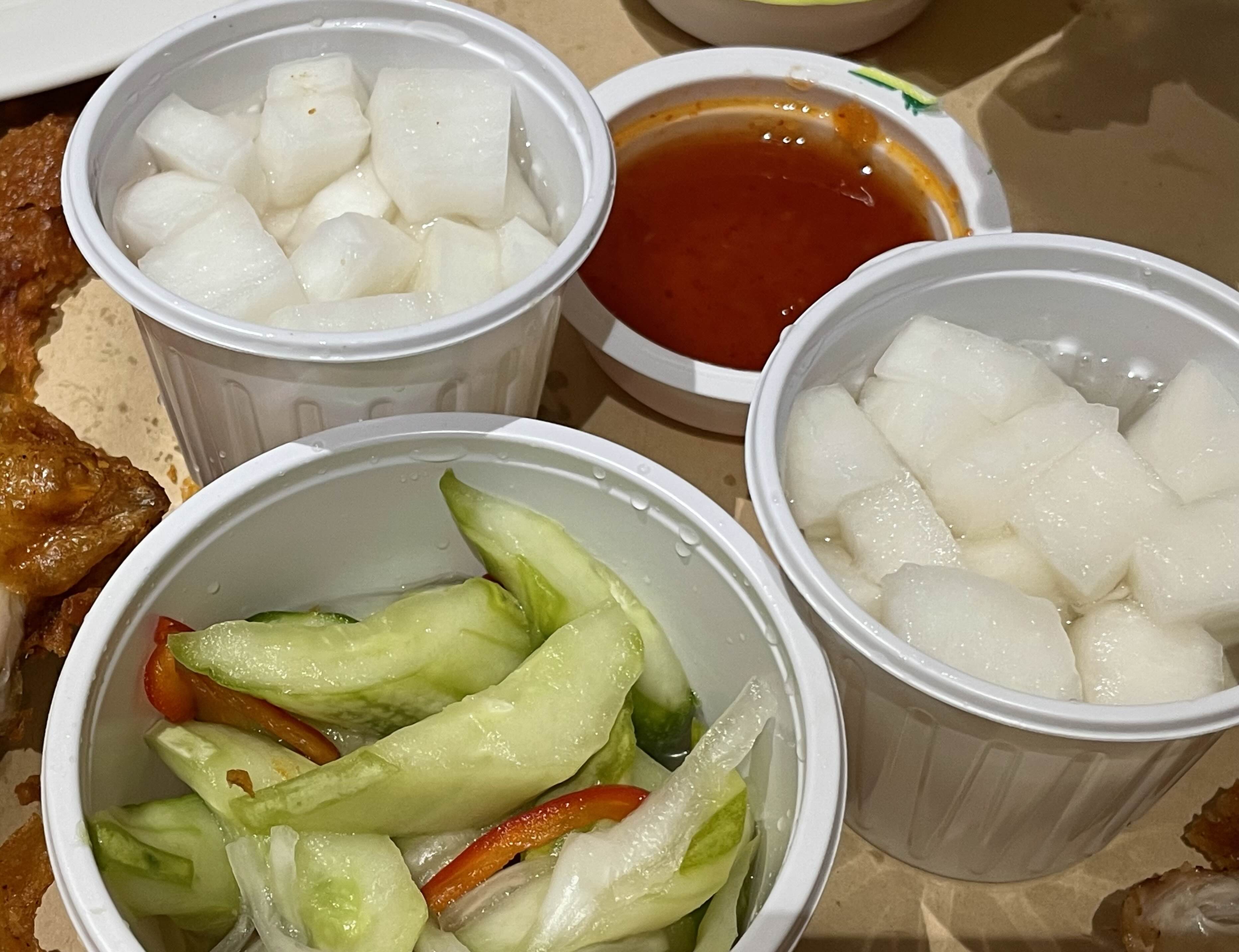 치킨무 3통, 오이절임을 주시는데 오이절임 최고!! 닭발이랑 잘 어울려서, 오이절임 주시는 걸 알았다면 한 통 추가했을거예요.