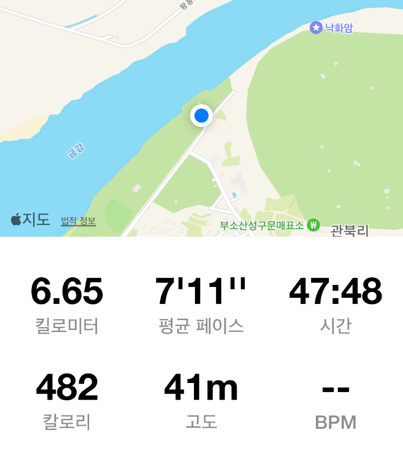 롯데리조트로 돌아가는 길이에요. 백마강교를 건너면서 찍었어요. 다리를 다 건너고 나니 약 11km 되더라고요. 여기서 조깅은 마무리하고, 걸으면서 몸 풀었어요. 부여 여행지에서 아침을 조깅으로 시작해보세요. 러닝을 하면 하루가 활기차고, 체력이 올라오는걸 느껴요.
