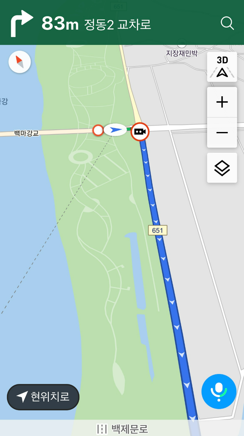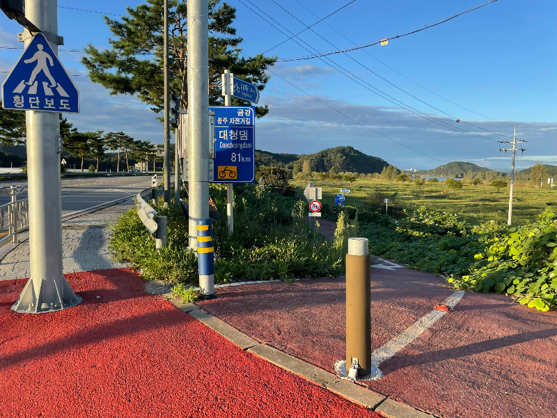 백마강교를 다 지나고 우회전 합니다. 자전거길로 가거나 더 아랫길인 강변길을 달려도 좋습니다. 자전거길 초입에 간이 화장실이 있습니다.