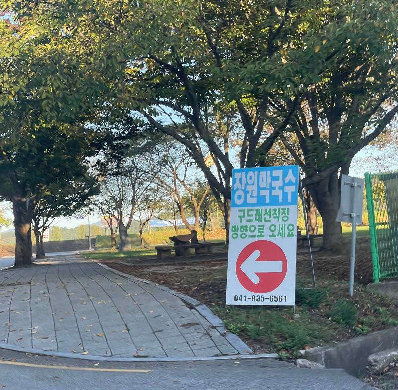 구드래선착장에 오니 부여 유명 맛집 장원막국수 안내판이 보이네요.