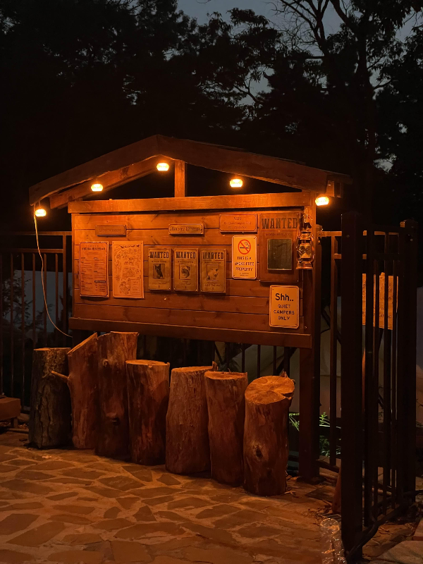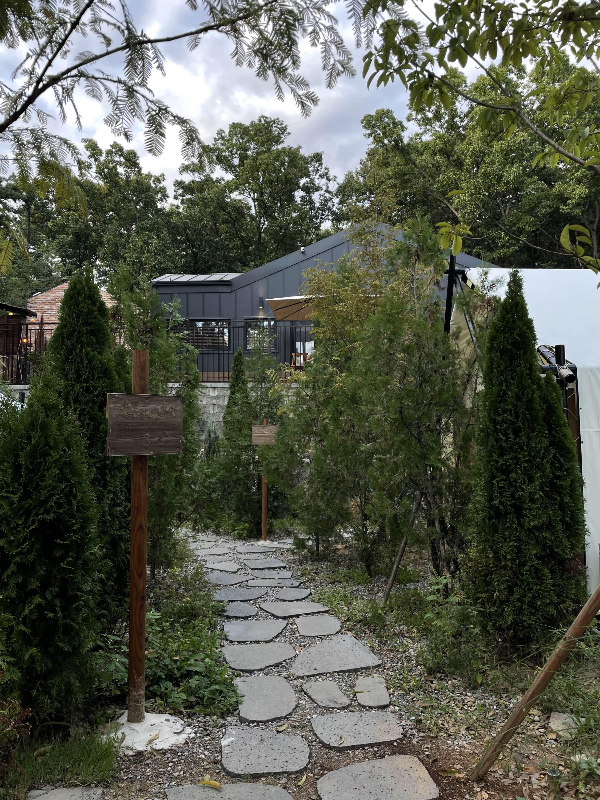 A0사이트에서 관리동 화장실을 이용하기 위해 글램핑 사이트 사이를 지나가요. 이 길이 참 예뻤어요! 글램핑 사이트가 잘 꾸며져있어서, 텐트가 없었다면 무조건 와봤을 것 같아요.