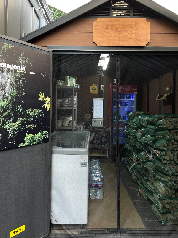 판매 물품은 장작, 목장갑, 얼음, 아이스크림, 컵라면, 쌈장, 햇반 등 입니다. 과자류가 없어서 아쉬웠어요.