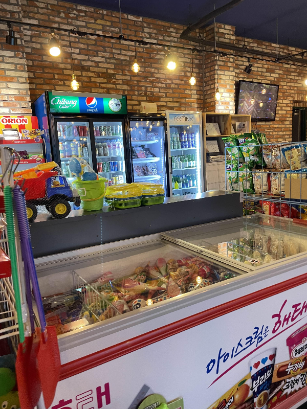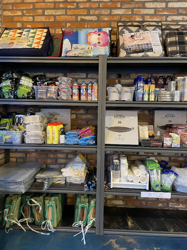 관리동 매점이 넓은 만큼 다양한 물건을 취급합니다. 주류, 음료, 아이스크림, 얼음, 라면, 햇반, 양념류, 캔, 냉동조리식품, 장작, 이소가스, 부탄가스, 목장갑, 물티슈, 담요 등 캠핑 시 필요한 왠만한 물건은 다 있습니다.