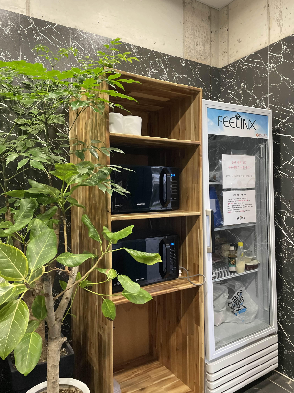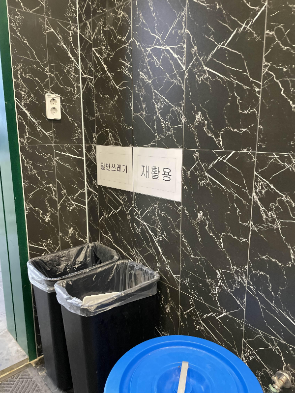 전체적으로 깨끗하게 관리되고 있습니다. 음식쓰레기통과 일반 쓰레기통이 다 있어서 편리했어요. 공동 냉장고, 전자레인지도 있습니다.