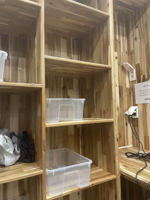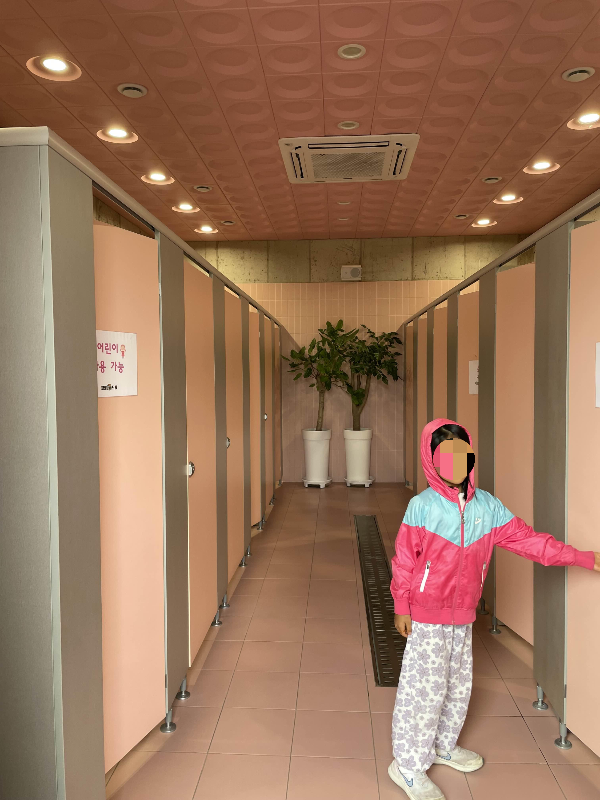 넓고 깨끗합니다. 핑크빛이라 들어가자마자 기분이 좋더라고요. 에어컨도 있어요.