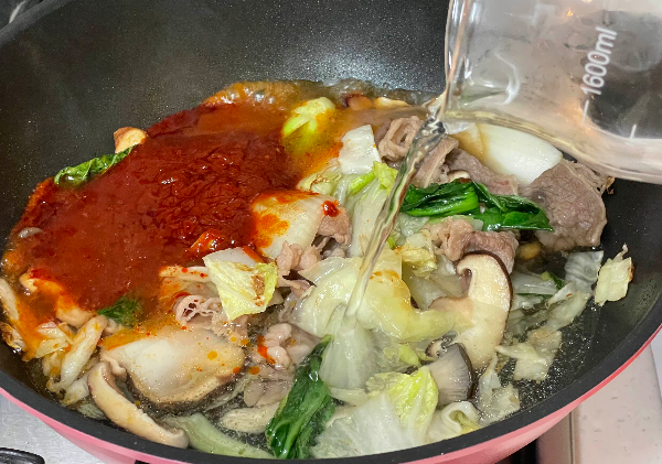 4. 소스를 넣고 물 700ml를 넣습니다.
