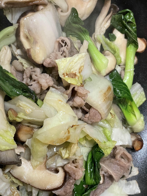 3. 기름을 두르고 고기와 야채를 2분 이상 볶습니다.