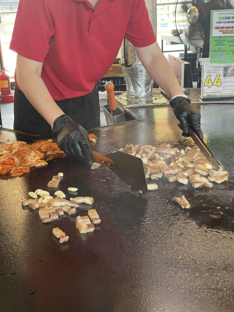 그리고, 김치와 부추 넣고 볶아주는데 잘 아는 맛이 더 맛있는거 아시죠? 새로운 분위기에서 구워주는 고기를 먹고 싶으시다면 추천합니다. 더운 열기에 어수선한 분위기, 고기가 부드러운 편은 아니라서 저희는 재방문하진 않을 것 같아요.