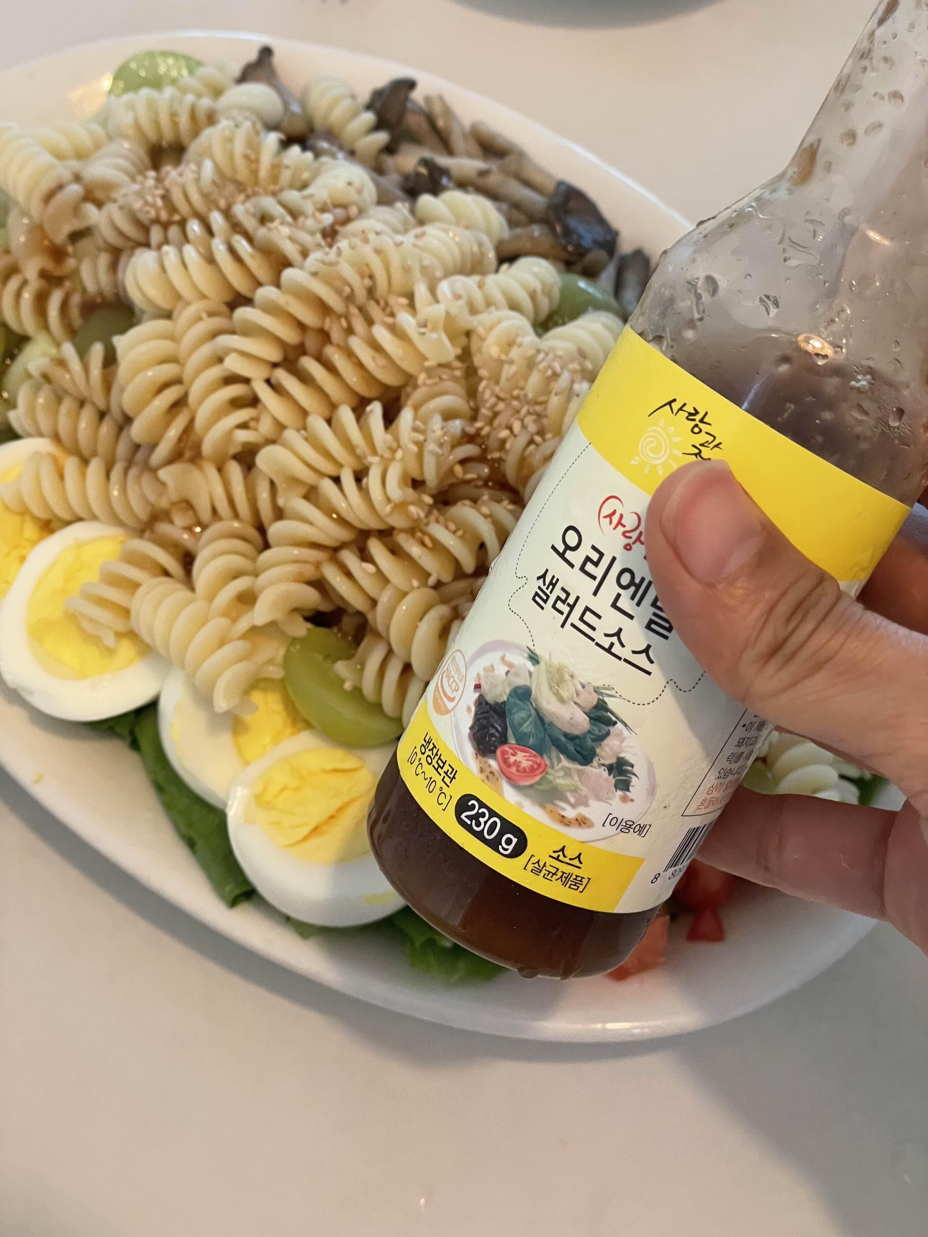 오아시스에서 주문한 오리엔탈 샐러드 소스를 뿌려주었어요. 자극적이지 않아요. 많이 달지도 않고요. 용량도 적은 편이라 유통기한 안에 먹을 수 있어서 마음에 듭니다.