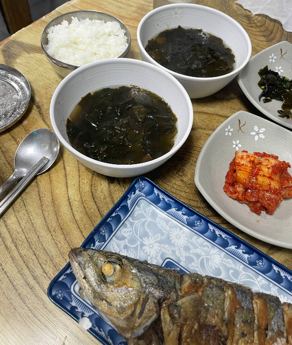 함께 나온 미역국도 좋습니더. 메뉴와 잘 어울리고요.