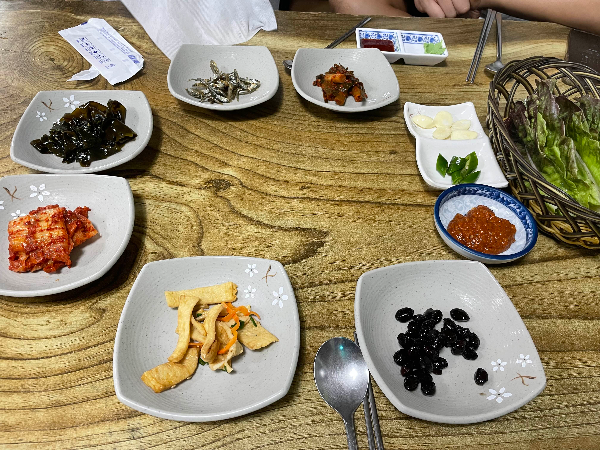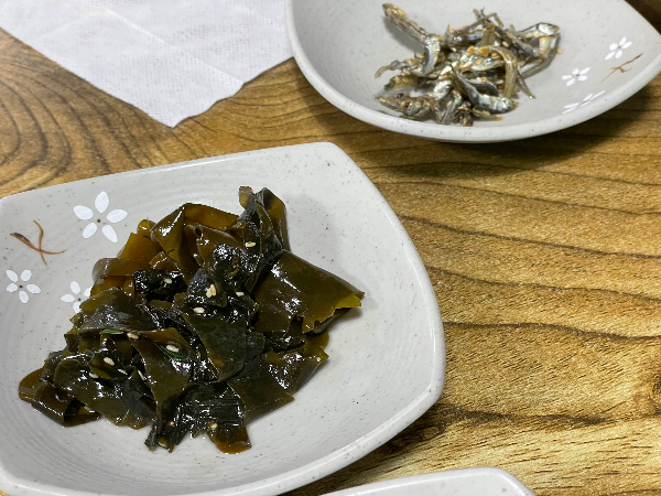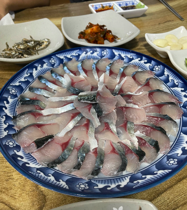 이미 맛집입니다. 미역줄기 정말 맛있고요. 멸치볶음은 큰데도 부드럽고 달달합니다. 아이들은 어묵볶음과 콩자반으로 밥 한공기 먹을 정도였어요. 그리고 파?김치가 진짜 맛있습니다. 고등어회랑 잘 어울려요.