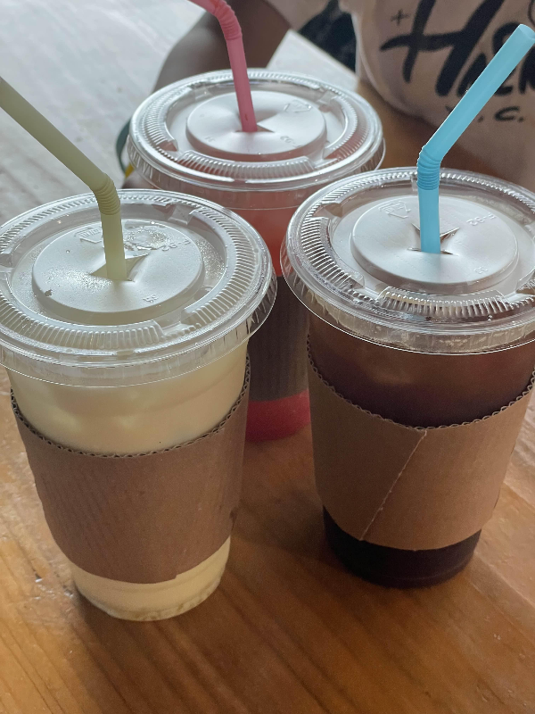 아이스아매리카노(5,000원), 고구마라떼(7,000원), 자몽에이드(6,000원) 주문했어요. 커피맛은 특별히 맛있진 않아요. 고구마라떼는 달지만, 진짜 고구마 향이 나서 만족스러웠어요. 자몽에이드도 쓴 맛 보다는 단맛이 강하고 맛있는 편입니다.