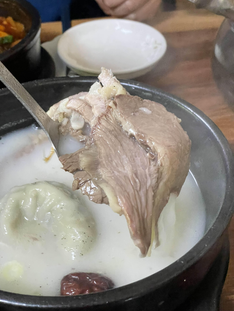 아이들이 그냥 곰탕이랑 달리 만두곰탕 시키면 더 잘 먹어요. 안에 들어간 고기도 은근 많고 무척 부드럽습니다.