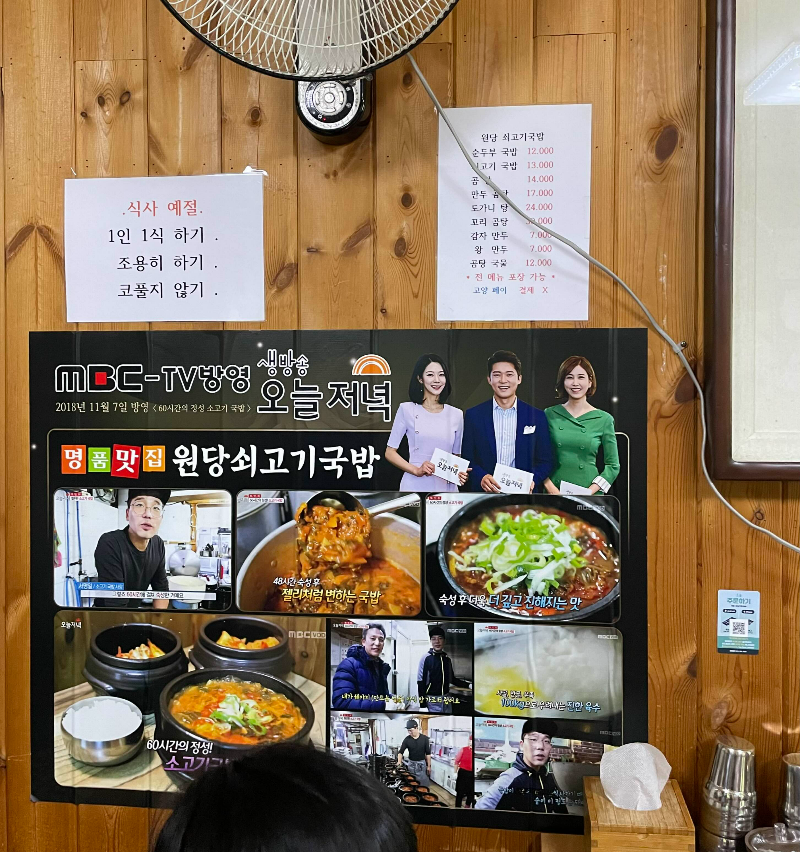빨간 소고기국밥이 땡겨서 원당쇠고기국밥을 또 찾았어요. 5번 정도 온 것 같아요. 추석 연휴가 시작되는 주말이라 부모님 드릴 국밥도 포장해 왔어요. 원당소고기국밥 실내는 외할머니집을 연상하게 해요. 정감가는 실내 분위기입니다. 에어컨은 항상 빵빵하게 켜져있어요. 먹으면서 땀 흘릴 수 없어요ㅋㅋ