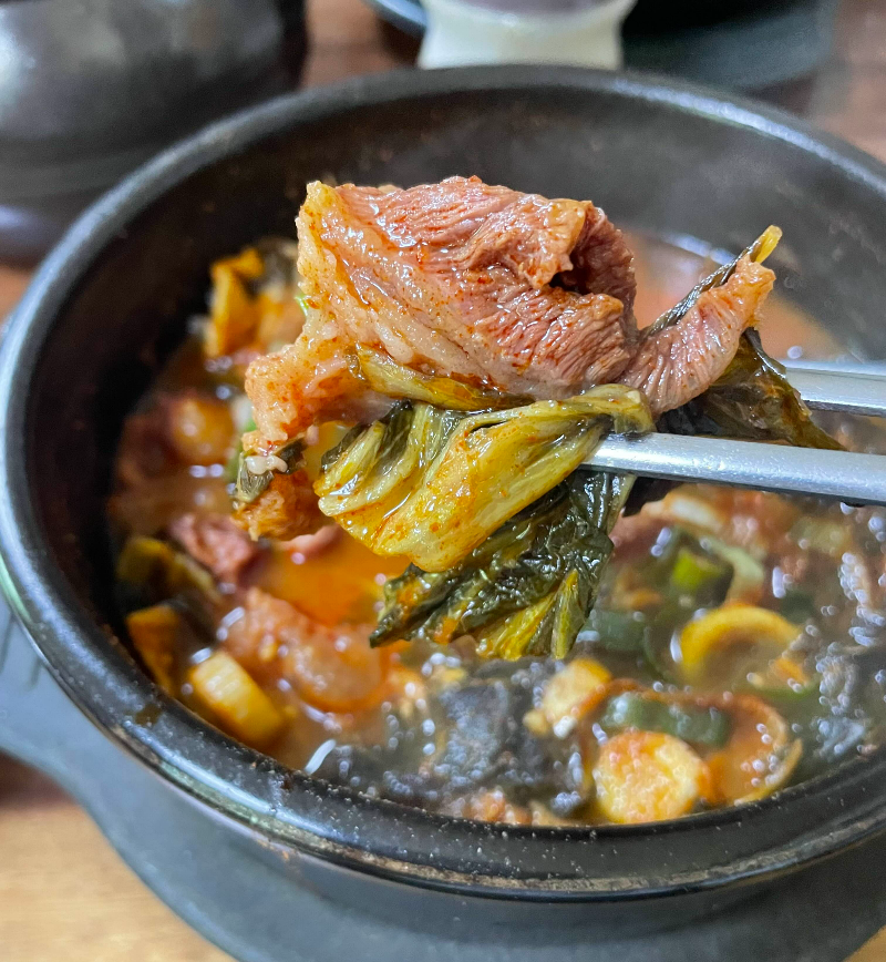 바글바글. 비주얼에서 이미 맛이 느껴집니다. 시레기 가득 들었고, 고기는 숭덩숭덩 큰 편입니다. 양은 만족스러워요. 포스팅 하면서도 군침돌 정도.