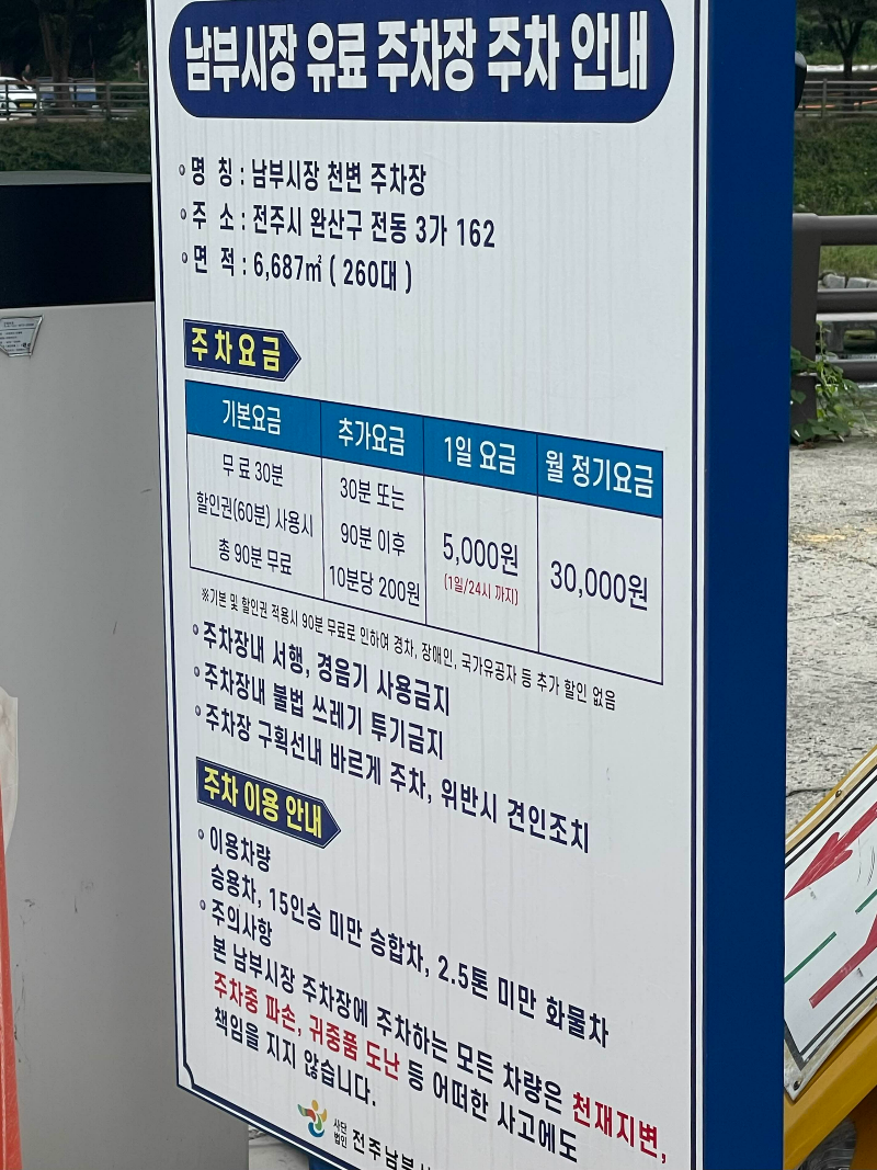 주차 : 남부시장 유료 주차장 (풍남문1길 19-3)
