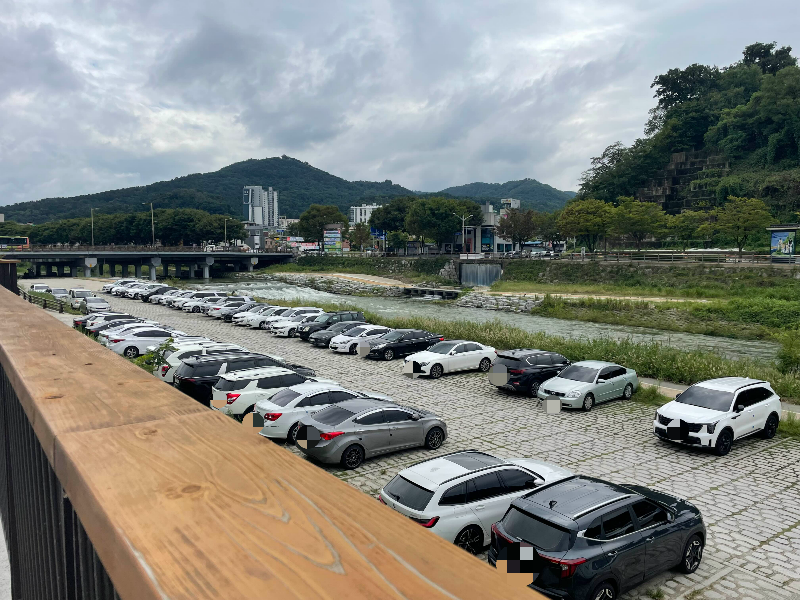 조점례남문피순대 주차는 남문시장유료주차장에 합니다. 현금결제는 불가하고 카드결제 가능합니다. 넓은 편이고, 옆으로 강과 자전거길이 있어요. 여기서 러닝하면 딱인데... 미리 알았더라면 뛰었을거예요.
