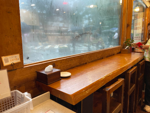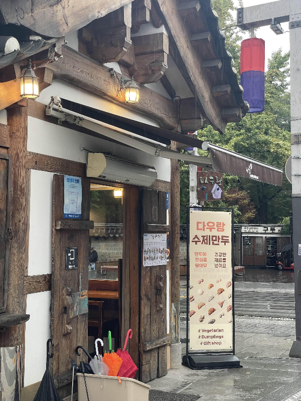 전주 한옥마을로 급하게 숙소를 예약하고, 입실 시간 전에 도착해서 출출한 배를 달래러 왔어요. 바로 옆에 길거리야에서 바게트버거 먹고, 다우랑에 만두 더 먹으러 왔어요. 내부는 만두와 창가 자리가 나란히 있어요. 의자는 7개 정도 되는 듯 합니다. 내부 자리가 없어서 외부 벤치 같은 곳에서 먹었어요.