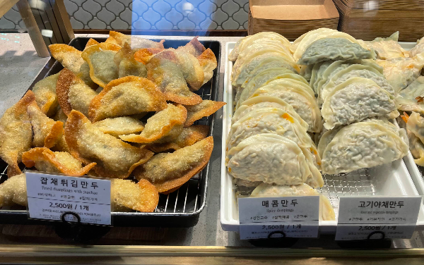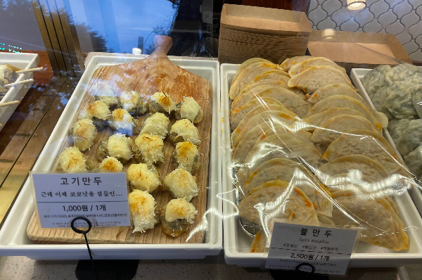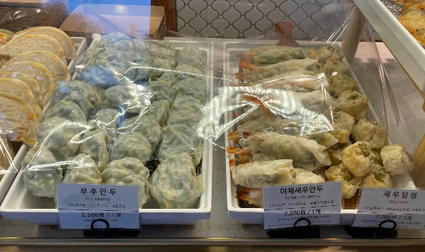 20종의 만두가 있고요. 매장 입장하면서 죽 둘러보면서 결정하시면 됩니다. 저희는 새우만두, 깨찰만두, 고기야채만두, 야채오븐만두 주문했어요. 다시 사진을 봐도 침이 꼴깍 넘어가네요. 평소 만두를 그리 좋아하지 않는데도 여긴 진짜 맛있었어요. 이유는 내용물이 아주 알차요.