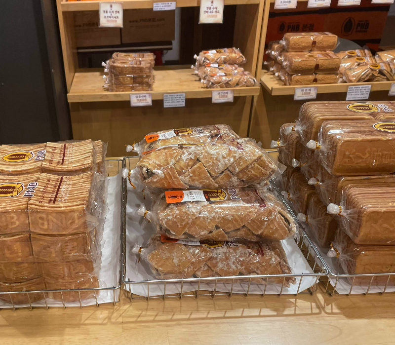 매장은 2층까지 있고, 초코파이 종류가 정말 다양합니다. 오리지널, 화이트, 녹차, 딸기, 모카, 바나나 맛이 있고, 미니 사이즈도 있어요. 초코를 좋아하는 저와 아이들이 먹어도 너어어어어무 달아서 하나를 네 명이서 나눠먹고, 더이상 입을 대지 못했어요. 수제 센배 또는 전병은 박스에 담아 선물용으로 괜찮을 것 같아요.