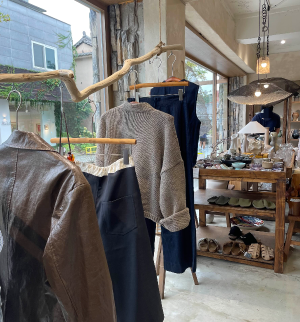 탐미주의의 투박하고 네추럴한 분위기의 의류도 있어요. 컬러부터 잘 어울리고, 면이나 린넨 소재의 의류가 많은 듯합니다.