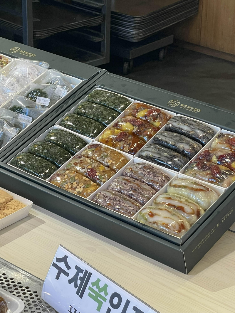 북촌쑥인절미 유명한 떡이 있죠! 현미쑥인절미, 밥알쑥앙금떡! 모두 넉넉하게 있어요.