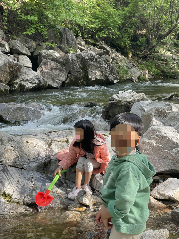 A5 사이트 뒤쪽에 계곡으로 냐려가는 길이 있어요. 시원한 물소리 듣고 음이온 가득한 공기 호흡하며 힐링 했어요. 아이들과 물에 발 담궈 보구요.
