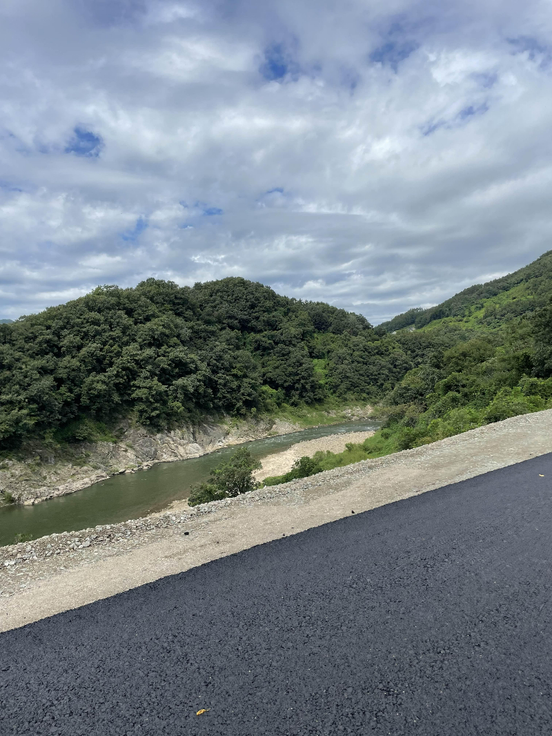 도로 공사중이라서 야자매트가 끊겨있어요.